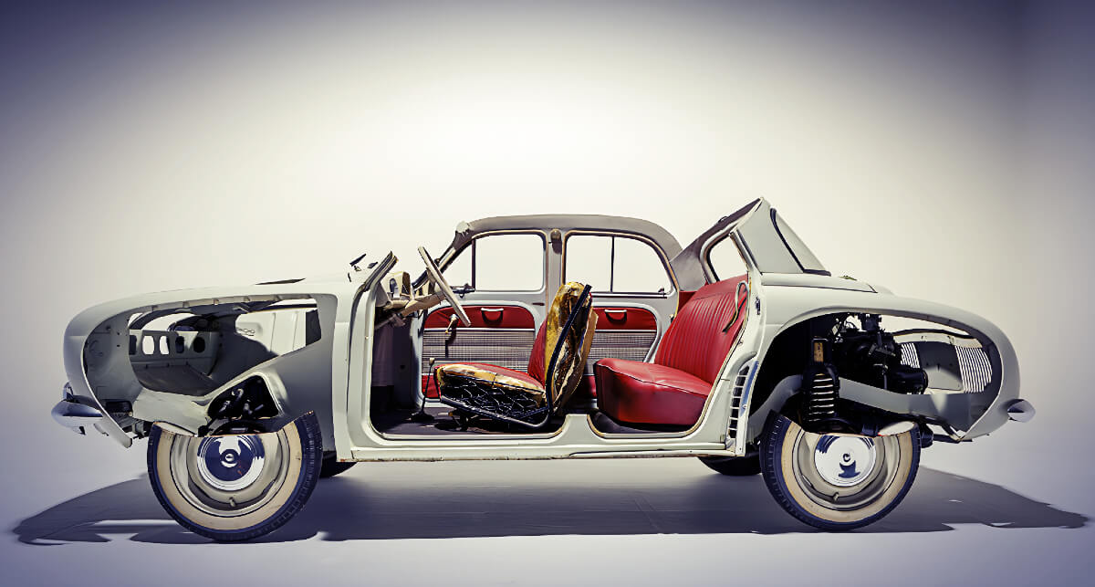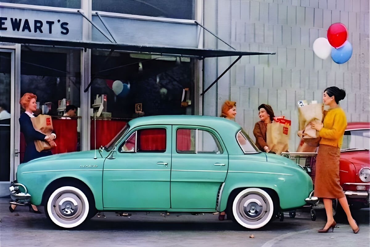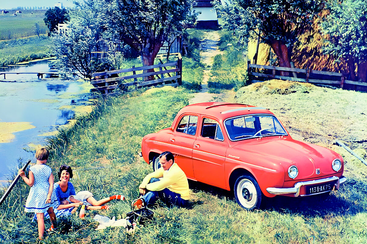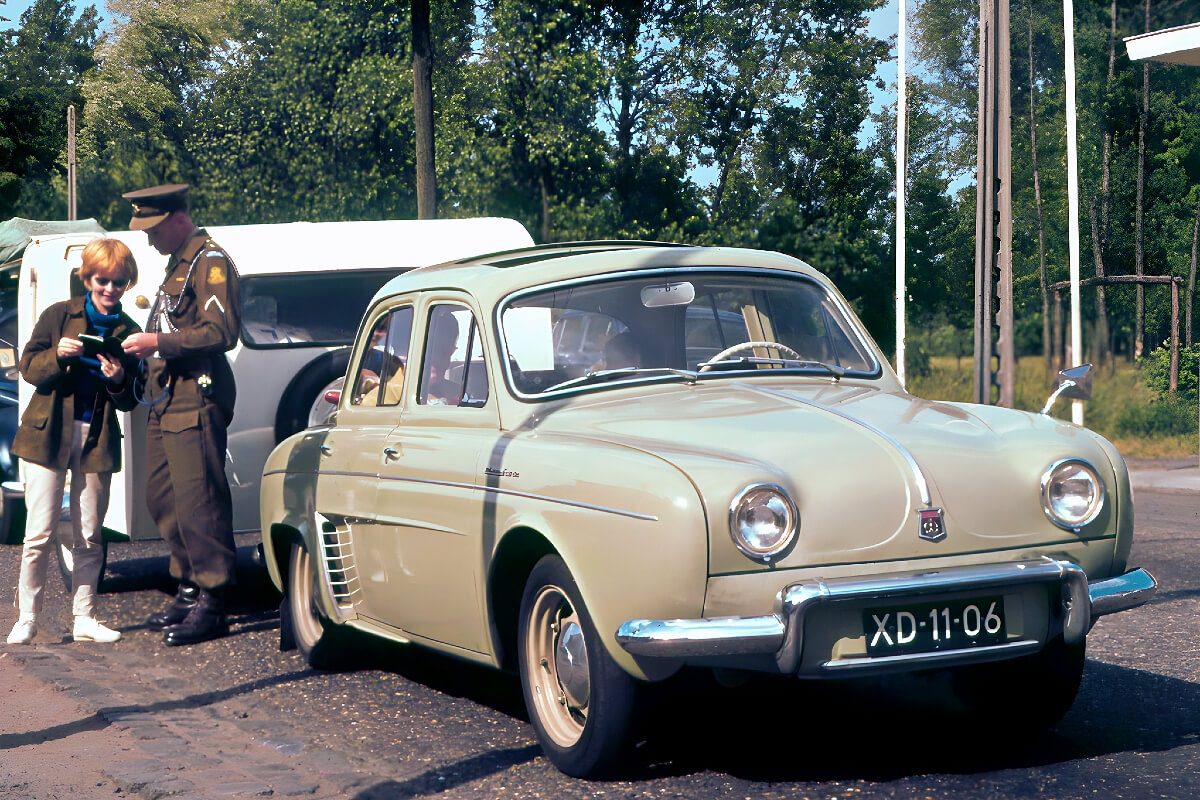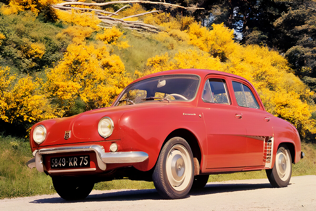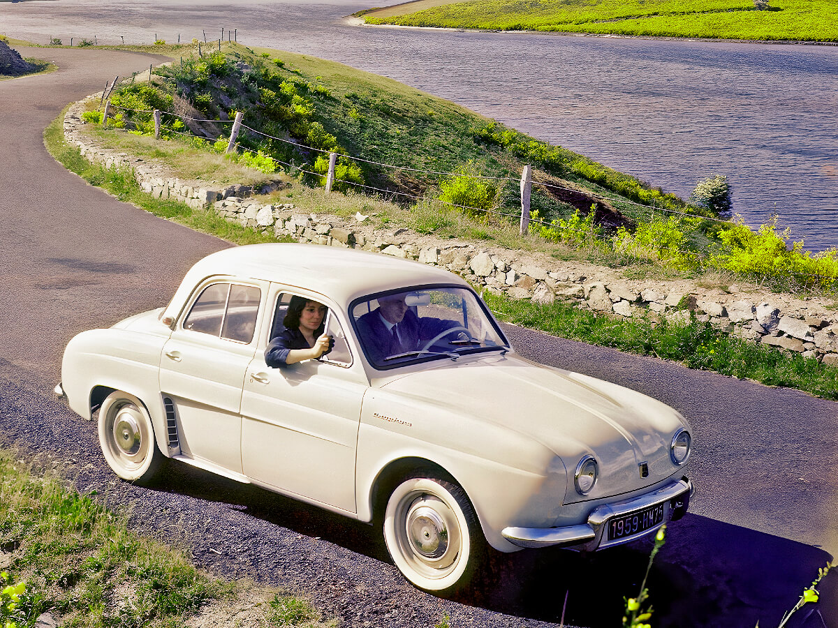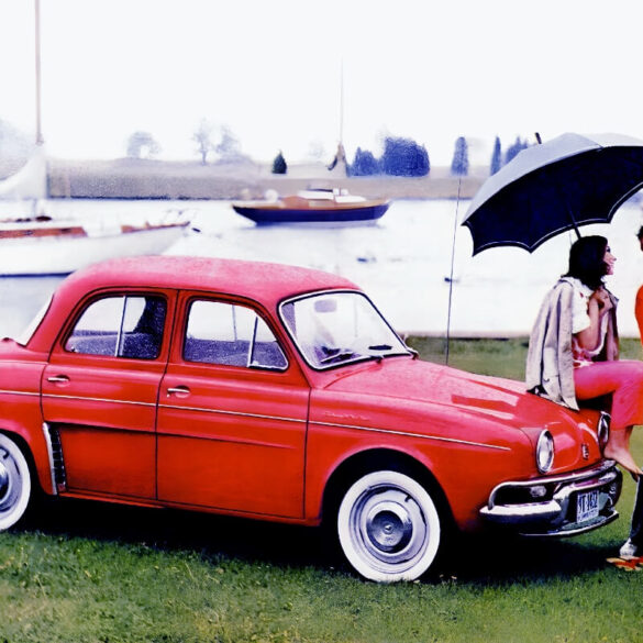Branded with a French word describing the female heir to the crown, the Dauphine was the old rear-engined Renault 4CV with smart new sheet metal and a slightly larger 856cc overhead-cam engine.