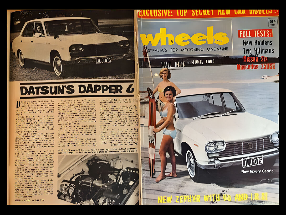 Released at the same time as the HR Holden, the Cedric pushed “Australia’s Own Car” off the cover of the June, 1966 edition of Wheels.
