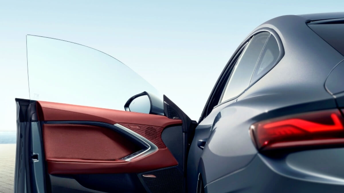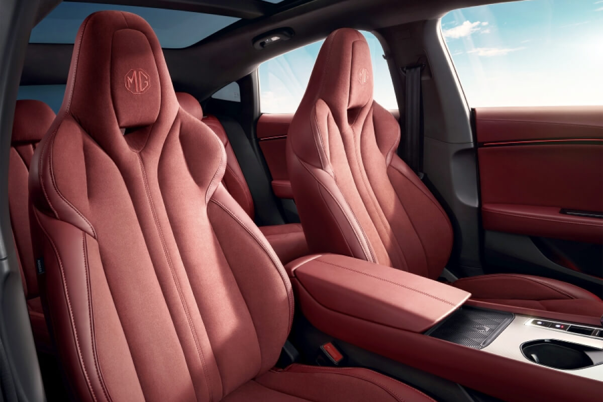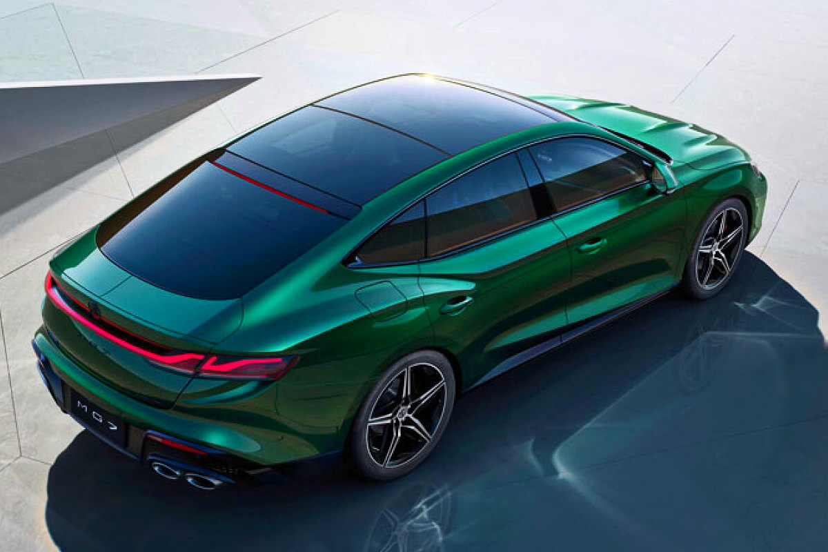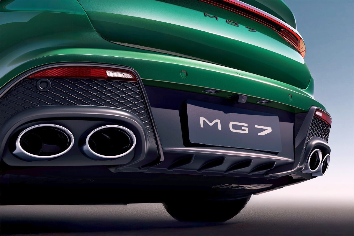 MG7 features double-pane frameless glass doors, a deployable active rear spoiler and quad tailpipes.