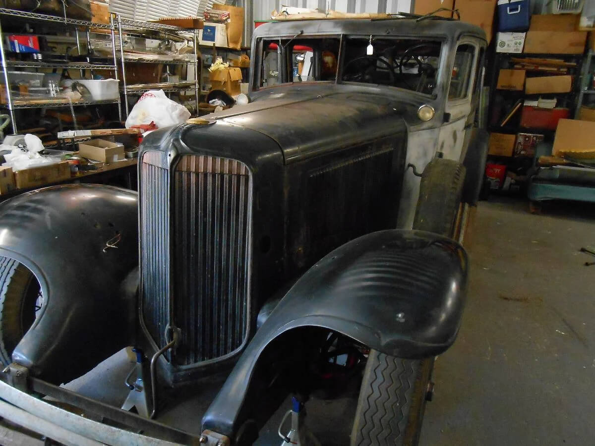 The car turned out to be a 1932 Chrysler, and by its length and appointments — such as dual side-mounted spares and a fancy trunk on the rear — it couldn’t be a Six, it had to be an Eight.