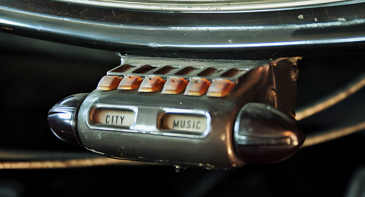 The Motorola unit, a 1935 model that the previous owner installed, had six sliding buttons set to tune in the most wanted stations.