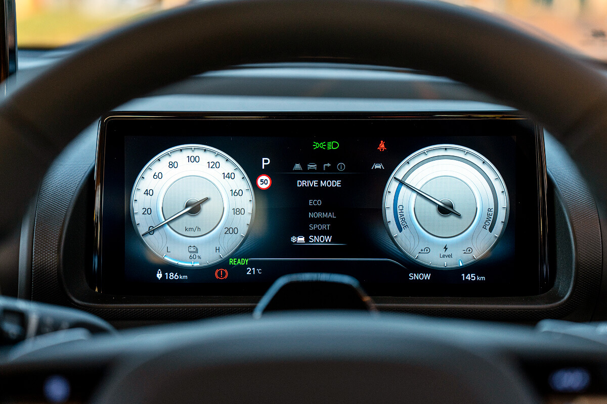 Up-to-the-minute tech is at the heart of a futuristic driving experience, while vehicle-to- load (V2L) capability of Hyundai Bluelink connected services, wireless phone charging and adjustable regenerative braking, is complimentary for the first five years.