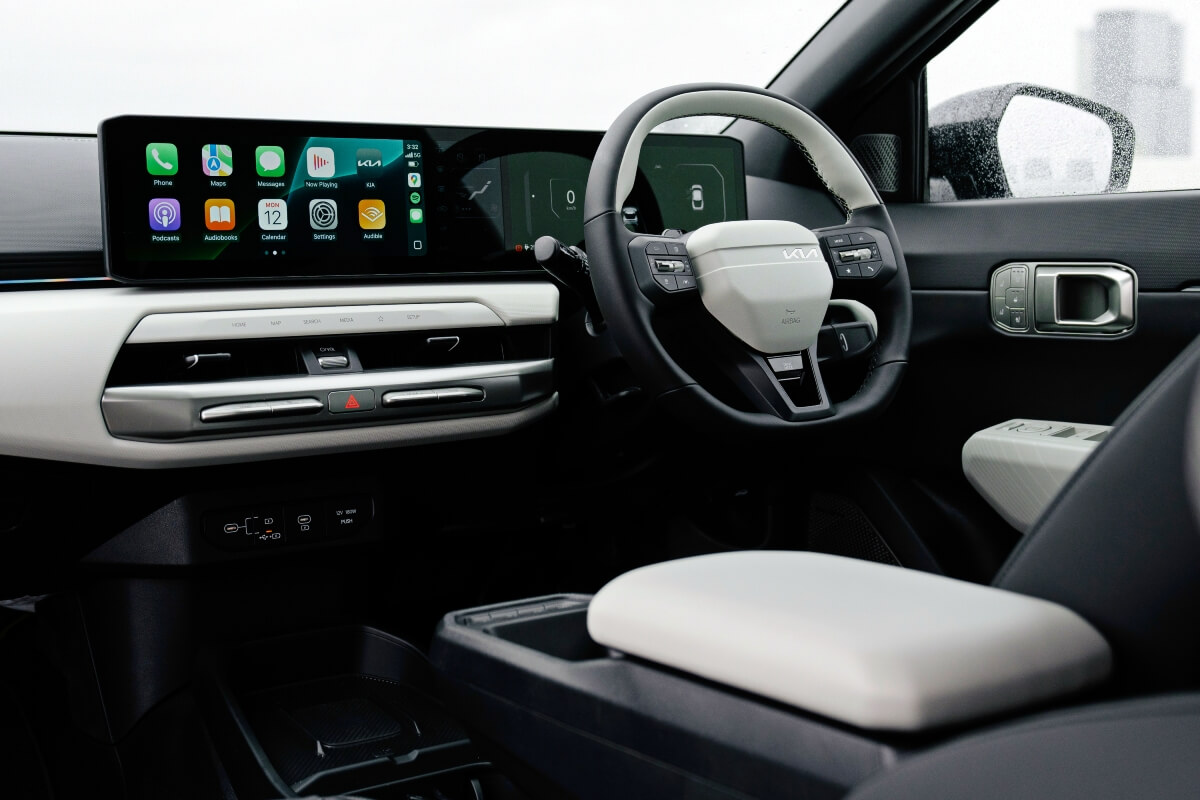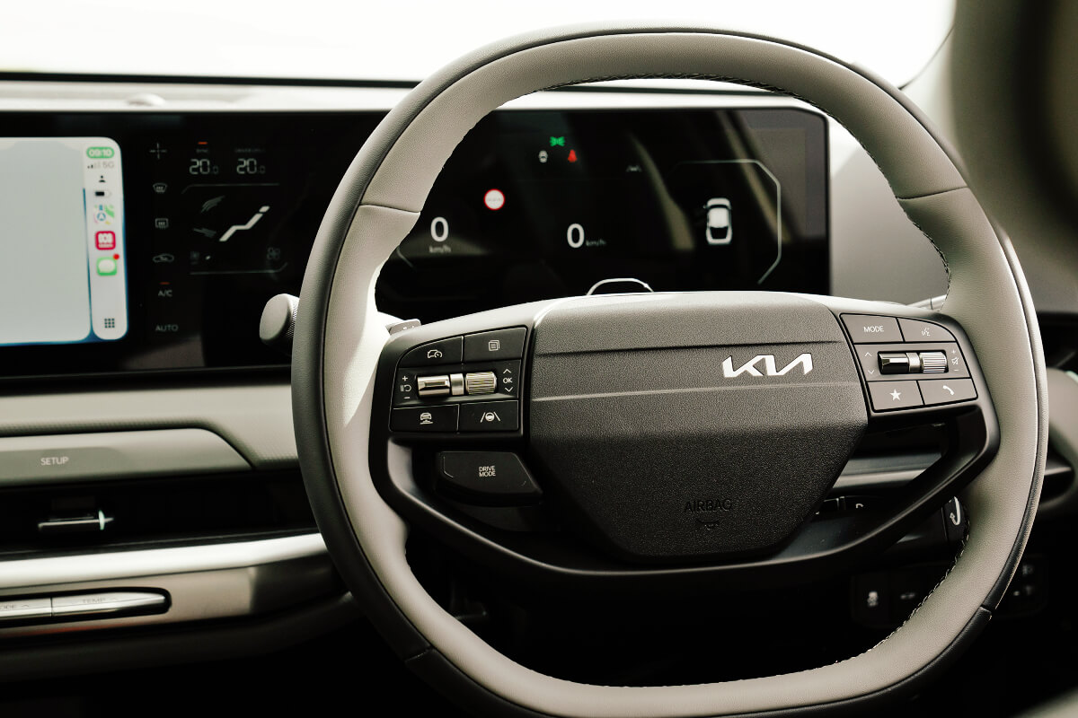 On test was the EV4 Air, which continues with Kia’s signature Opposites United language as well as adding its own unique character, the lowest aerodynamic drag coefficient (0.23Cd) of any Kia model.