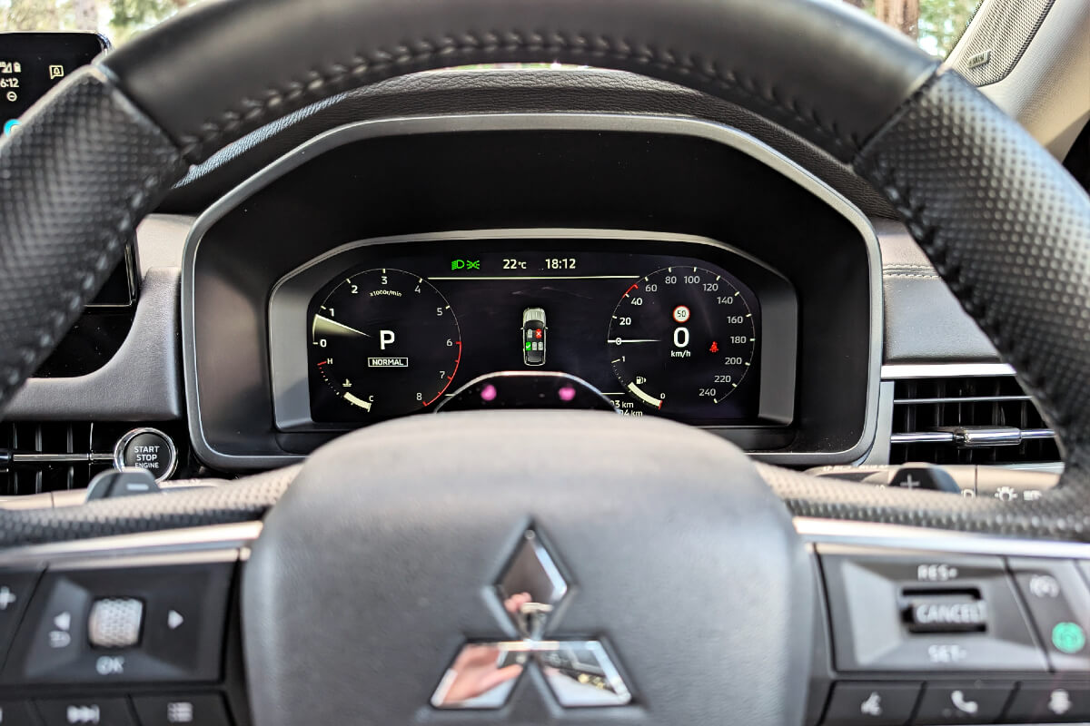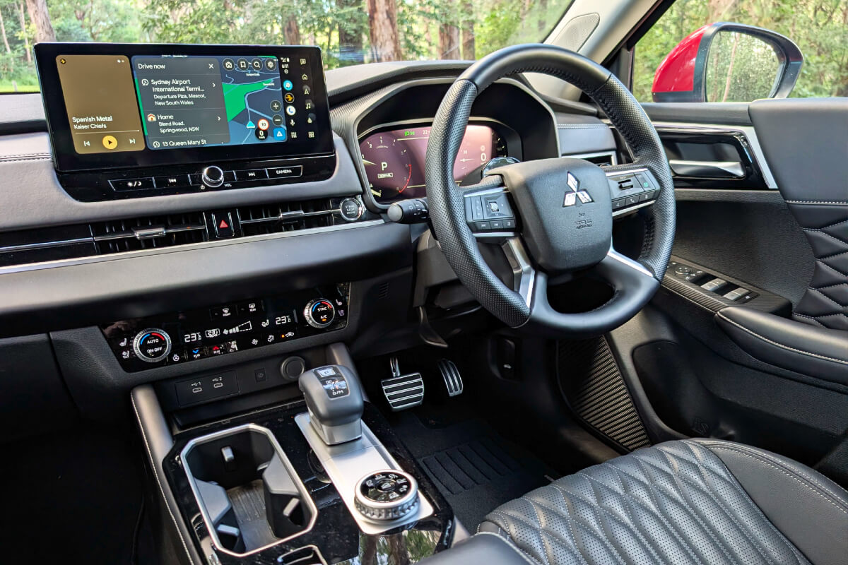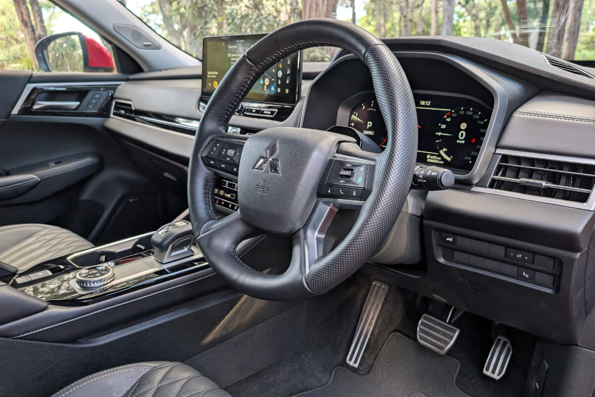 Getting into the Outlander for the first time we were impressed by the fit and finish, generous space and comfortable seats, along with the way the chunky steering wheel sat snugly in our hands.