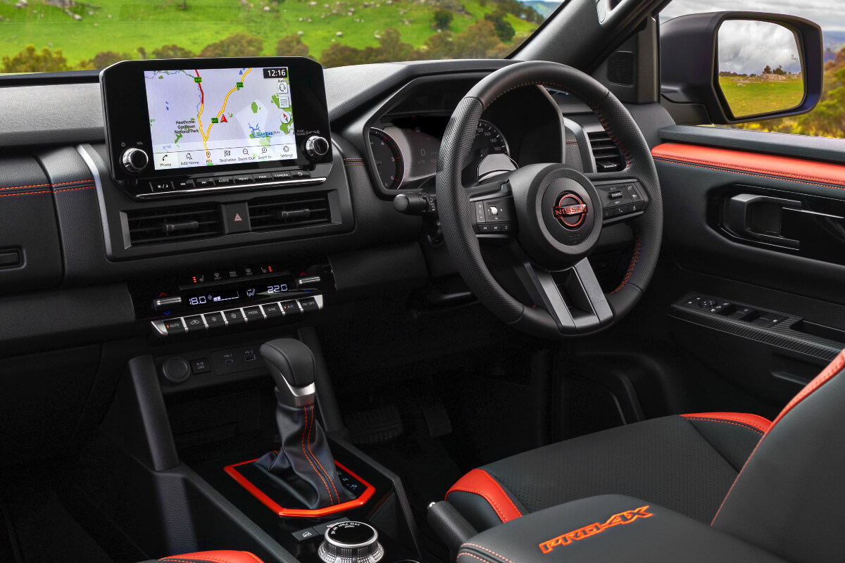 Inside, the cabin is distinguished by dark colour air conditioning finisher, leather-accented seats with orange stitching and suede bolster, leather-accented steering wheel with orange stitch, and ‘PRO-4X’ logo embossed on the front seat backs.