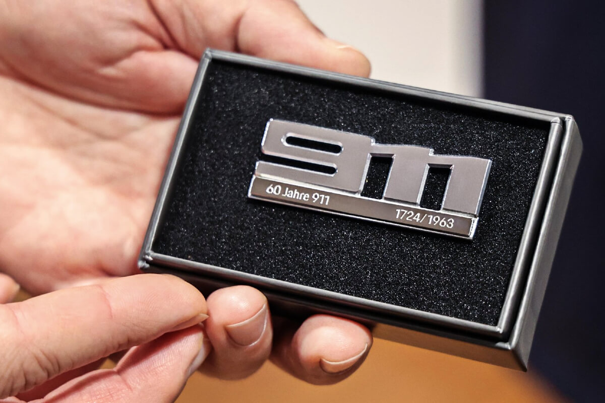 The 911 badge on the passenger side of each car’s dashboard bears the personal limited-edition number of the special model.