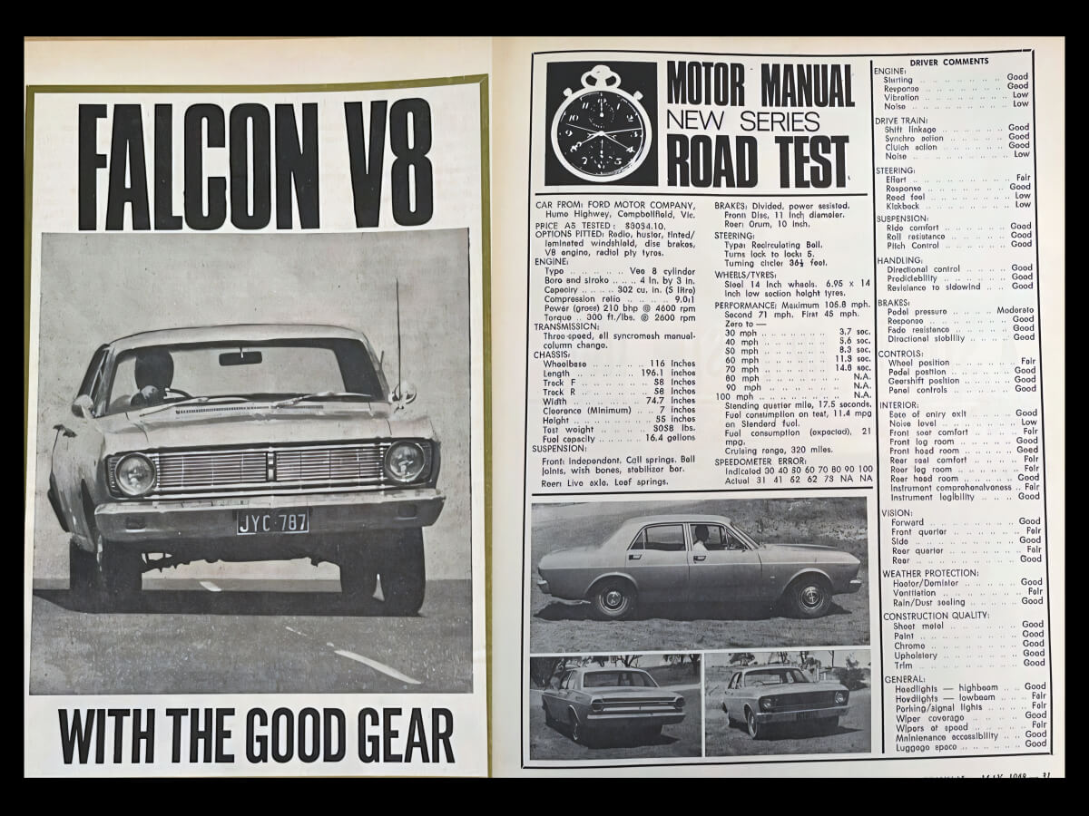 The Falcon was road tested by Motor Manual (March, 1968 edition).